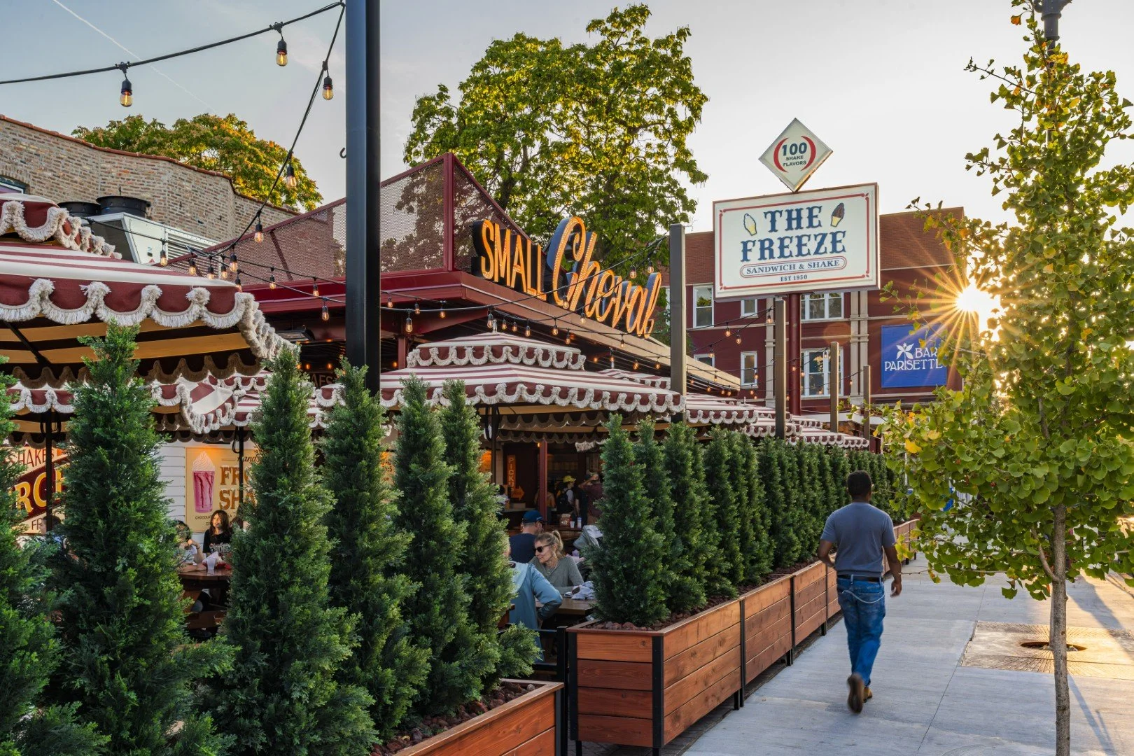 Via Chicago is working with a popular local restaurant group to renovate, restore, and preserve a beloved Logan Square ice cream shop. Long-known for both its delicious soft-serve and impossibly small building, "The Freeze" will soon see the addition of customer restrooms (!) and an expanded kitchen allowing for daily food service throughout the full year. The spacious outdoor patio will be screened from traffic by a row of planters, with a variety of low seating options to entertain the young neighbors who are some of The Freeze's most loyal customers.