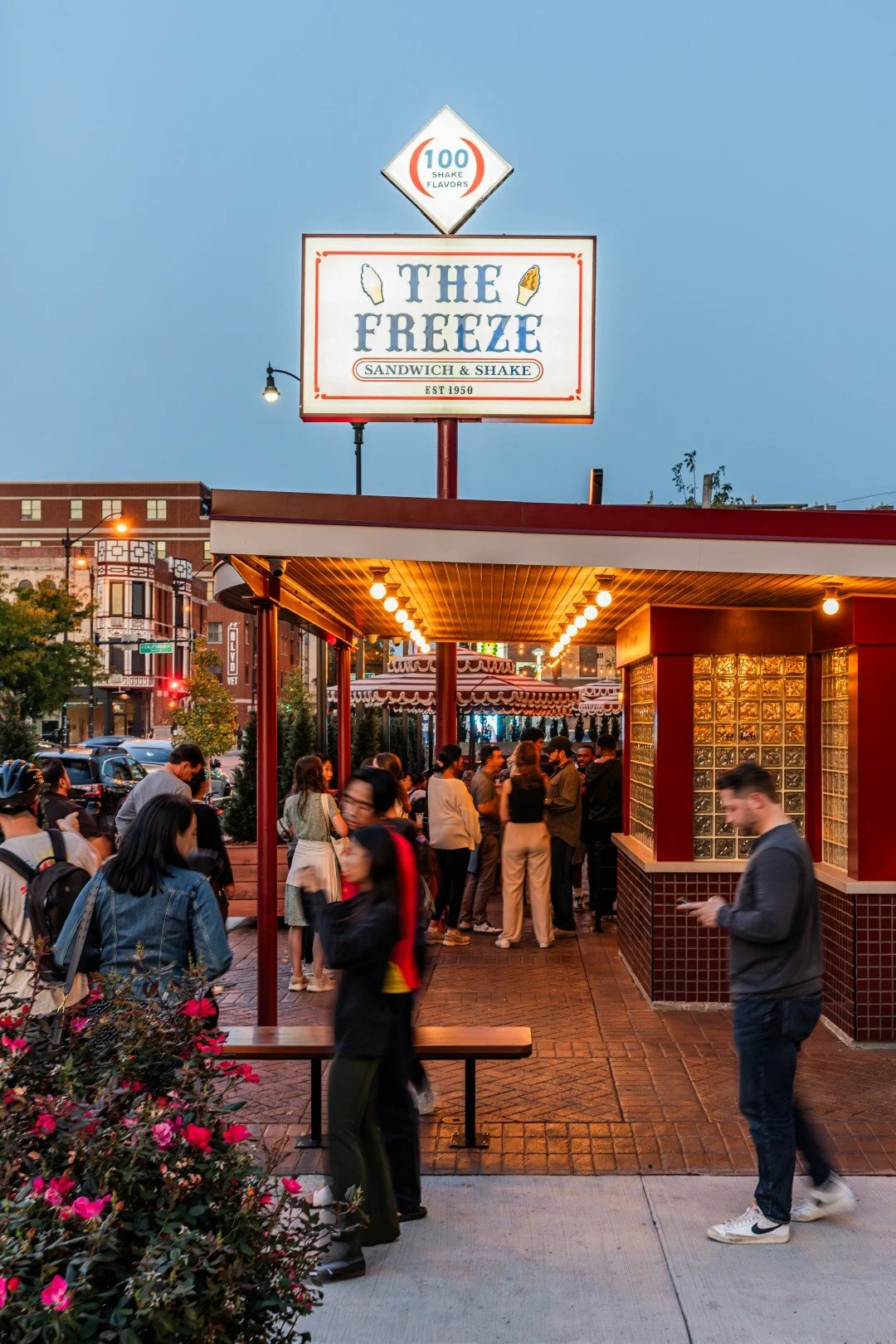 A non-original aluminum storefront will be removed to reveal the original character of this former Tastee-Freez - highlighted by the original roofline extending into a wide cantilever over three sides of the building. The service window will rotate toward the patio (rather than the street), streamlining the flow of customers and acknowledging the new “c’mon and stay a while!” mindset of this neighborhood gathering spot. Making any sort of change to a seemingly-timeless gem like The Freeze is a delicate feat - but our Armitage studio embraced the challenge with unmatched enthusiasm. We’re proud to deliver reborn landmark that our meticulous client and our Logan Square community can both celebrate.